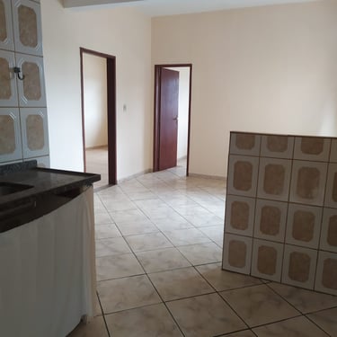 Dois quartos, cozinha conjugada banheiro e uma área espaçosa.
